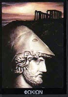 1) Ο Φωκίων (402-317 π. Χ.) υπήρξε μαθητής του Πλάτωνα και υποστηρικτής της πολιτικής του Φίλιππου. Επικεφαλής του φιλομακεδονικού κόμματος, ήταν ως πολιτικός μετριοπαθής, φιλειρηνιστής, ικανότατος ρήτορας και αντίπαλος του Δημοσθένη. Υπηρέτησε την πατρίδα του στα πεδία των μαχών με επιτυχία, έχοντας διατελέσει στρατηγός 45 φορές, περισσότερες από κάθε άλλον. Περιφρονούσε τον πλούτο και ήταν γνωστός για τον λιτό τρόπο ζωής του. Οι Αθηναίοι τον αγαπούσαν, μολονότι ανήκε στους αριστοκράτες, για τη φιλοπατρία, τη φρόνηση και την τιμιότητά του, γι’ αυτό και ονομαζόταν Φωκίων ὁ χρηστός, ο ακέραιος. Μετά τον θάνατο του Αλέξανδρου, ξέσπασε ο εμφύλιος πόλεμος μεταξύ των διαδόχων του, που είχε αντίκτυπο και στην Ελλάδα. Και στη δίνη της σύγκρουσης του διαδόχου τού Αντίπατρου Πολυπέρχοντα και του Κάσσανδρου, γιου του πρώτου, παρασύρθηκε ο Φωκίων. Η Αθήνα τότε βρισκόταν υπό μακεδονική κυριαρχία, έχοντας χάσει την πολιτική της ανεξαρτησία, και στη Μουνυχία ‒ στον λόφο του Πειραιά, τη σημερινή Καστέλλα ‒ τοποθετήθηκε μακεδονική φρουρά με αρχηγό έμπιστο αξιωματικό του Κάσσανδρου. Ο Φωκίων ευνοούσε την παραμονή της φρουράς, γιατί είχε τη γνώμη πως μόνο αυτή μπορούσε να εγγυηθεί την ασφάλεια του καθεστώτος στην Αθήνα, για να αποφευχθούν τα δεινά από τις πολιτικές αναστατώσεις. ΄Έσι, όταν ο Πολυπέρχων υποσχέθηκε στους Αθηναίους την επαναφορά του δημοκρατικού πολιτεύματος και έφτασε στην Αθήνα ο γιος του, ο Αλέξανδρος με στρατιωτική δύναμη, οι δημοκρατικοί ξεσηκώθηκαν για την ανατροπή του πολιτεύματος. Ο Φωκίων κατέστη ύποπτος, και στην εκκλησία του δήμου που συγκλήθηκε του αφαιρέθηκε η στρατηγία, κατηγορήθηκε για προδοσία και καταδικάστηκε σε θάνατο. Αρχές Μαΐου του 318 και σε ηλικία 84 ετών ήπιε το κώνειο μαζί με άλλους φίλους του επίσης καταδικασμένους, και τα πτώματά τους πετάχτηκαν έξω από τα όρια της αττικής γης.