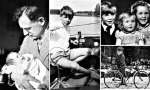 Steven Hawingk enjoys a cookout with his family – Jane and their three children, Jane, Robert and Tim – in Cambridge, 1977.