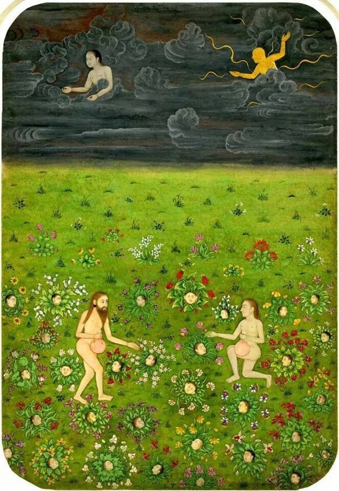 2) Scene from a Fantastic Garden’, Indian miniature, Mughal Period , early 1800’s