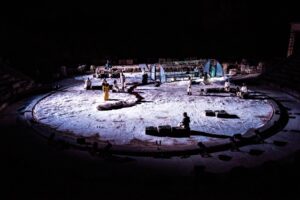 Έχω όμως μια απάντηση, ή καλύτερα μια λύση για το θέατρο, εφόσον από εκεί ξεκινήσαμε, αυτό μας έδωσε την αφορμή. Πρόκειται για μια λύση καθόλου δύσκολη που αρκετοί θίασοι την χρησιμοποιούν. Τα χειλόφωνα- όπως με πληροφορούν ότι τα ονομάζουν – τις κοινώς λεγόμενες “ψείρες”. Και ρωτώ τον κύριο Αργύρη Ξάφη, σκηνοθέτη της εν λόγω παράστασης: Γιατί όχι και στη δική σας; Έχουμε έναν θίασο που κινείται, μετακινείται, χορεύει, τρέχει πάνω στη σκηνή. Φεύγει προς τα πίσω, δεξιά αριστερά, σου γυρίζει την πλάτη ΜΙΛΩΝΤΑΣ. Εδώ, ακόμα και για ανθρώπους με οξύτατη ακοή, τα λόγια χάνονται. Γιατί λοιπόν κάποιοι σκηνοθέτες επιλέγουν να μην φοράνε “ψείρες” οι ηθοποιοί τους; Θέλουν μήπως να μας εξετάσουν στο κατά πόσον μπορούμε να παρακολουθήσουμε το κείμενο, αν το ξέρουμε δλδ απ’ έξω κι ανακατωτά; Είναι μήπως μια αφ’ υψηλού αντιμετώπιση του κοινού από τον σκηνοθέτη; Ή μήπως προχειρότητα, ή μήπως πάλι απλή αδιαφορία; Διερωτώμαι. Πάντως, ό,τι και να επιλέξεις, καλό δεν ακούγεται για τη σχέση κοινού-σκηνοθέτη.