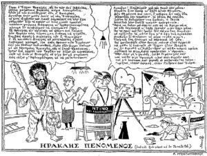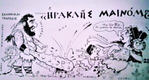 …Ένα τέταρτο γινόταν θρήνος και σπαραγμός επί σκηνής. Χτυπιόταν όρθιος ο γέροντας και πλονζόν έπεφτε η γυναίκα του Ηρακλή, η Μεγάρα, και σπάραζε. Κι αντιλαλούσαν κάμποι και βουνά και ράγιζε η πέτρα της Επιδαύρου και ξεσκιζόταν η καρδιά των θεατών στις πρώτες κερκίδες κι έπεφτε δάκρυ των 75 δραχμών διακεκριμένο.