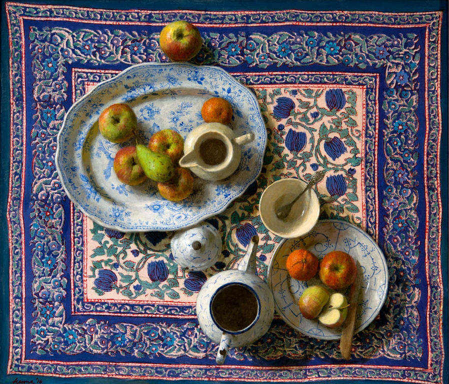 Κατάλευκο το λινό τραπεζομάντηλο, λείο και κολλαριστό σαν λίμνη παγωμένη του βορρά, τα δαμασκηνά του σχέδια γαλακτώδεις κρύσταλλοι κάτω από την επιφάνεια, εκρήγνυται σχεδόν ζεματιστό στη μέση της σαλοτραπεζαρίας μου σε χρώματα, ευωδιές, γεύσεις. Η γαλοπούλα, που μόλις ξεφουρνίστηκε χρυσαφένια, ξεχειλίζει πεντανόστιμη γέμιση, νά το τό κέρας της Αμάλθειας, πολύτιμη συνταγή που περνάει από γενιά σε γενιά. Στις πιο φίνες πορσελάνες της μητέρας μου, αχνιστή κολοκυθόσουπα με κομματάκια τζίντζερ και ρικότα, πίτες πολλών ειδών παραταγμένες ανάμεσα στα τυριά και στα αλλαντικά, βοδινό ψητό με σάλτσα πορτοκάλι σβησμένη με κρασί μαδέρα. Ξηρά βερίκοκα και δαμάσκηνα, που από το προηγούμενο βράδυ μουλιάζουν μέσα σε ζεστό κοτόζουμο έχουν ανακτήσει τη φρέσκια όψη τους και τώρα καμαρώνουν μέσα σε γαβάθες, τροφαντά και ακόμα νοστιμότερα απ’ ό,τι στη φυσική τους κατάσταση. Σπασμένα ρόδια σκορπίζουν ματωμένα την αφθονία τους παντού. Κάστανα, καρύδια, σταφίδες. Και κρασιά, πολλά κρασιά, Clos Vougeot 1846, ναι, από τότε.