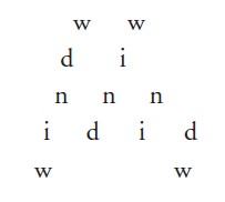 Αλλού, χρησιμοποιεί το κλιμακωτό σχήμα. Συνήθως το ποίημα αρχίζει «κανονικά» και στη συνέχεια το μήνυμα οπτικοποιείται με το σύστημα των βαθμίδων. Είναι σαν να διαιρείται ο στίχος σε τρία μικρότερα τμήματα, τα οποία δημιουργούν τρία επάλληλα επίπεδα που τοποθετούνται συνήθως στο μέσο του ποιήματος.