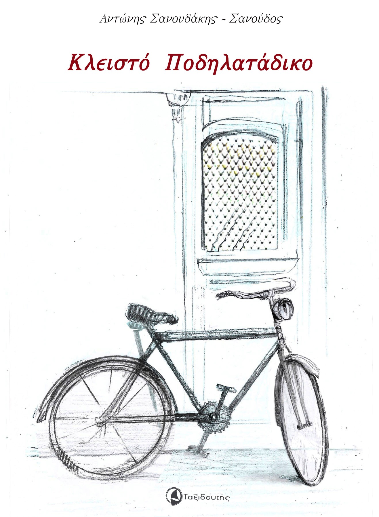 Στο εξώφυλλο , το σχέδιο του ζωγράφου Μανώλη Σαριδάκη – μια πόρτα αστικού σπιτιού, παλιότερης εποχής κλειστή, κι ένα ποδήλατο σταθμευμένο- υπαινίσσονται ότι πέρασαν οι εποχές της δόξας τους και των σημαινομένων τους, σαν τα όπλα του πολεμιστή κρεμασμένα στον τοίχο. Ωστόσο, και το σπίτι-η πόρτα- είναι εκεί, κρατώντας σφιχτά στην αγκαλιά του τα μυστικά του, ενώ το ποδήλατο όρθιο περιμένει με μια νέα πνοή να επανακάμψει η «μαινόμενη έφιππη αυλητρίδα επί ποδηλάτου», το όνειρο δηλαδή που δεν πραγματοποιήθηκε, ο πόθος που είναι γραμμένος στο στήθος ή στον ουρανό ή στη μουσική του αέρα. Γιατί, όσο και αν υποθέσουμε ότι το Κλειστό ποδηλατάδικο υπαινίσσεται ότι πέρασε ο καιρός της δράσης και της ορθοπεταλιάς, τίποτα δεν έχει τελειώσει. Η εποχή έχει αλλάξει, αλλά και αυτή με τροχούς τρέχει και η ποίηση που ποτέ δεν παραιτείται επίσης.