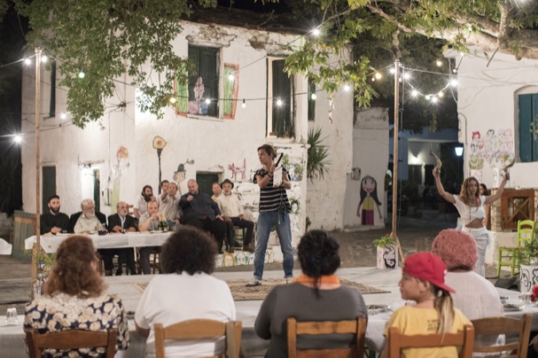 Με την άφιξή τους διαπιστώνουν ότι τα πάντα στην Ικαρία είναι όπως στην αρχαία εποχή, όταν εκεί ζούσαν οι Κάρες. Αυτοκίνητα δεν υπάρχουν και όσοι φτάνουν με το πλοίο θα πρέπει να ανεβούν μια ανηφόρα σαν την άλλη στη Σαντορίνη, σέρνοντας και τις βαλίτσες τους, σε έναν ξερότοπο, σε δύσβατα μονοπάτια, χωρίς αυτοκίνητα, χωρίς δικαστήριο, Ξενοδοχείο, Τράπεζα και, κυρίως, χωρίς λεφτά. Τα λεφτά είναι ντεμοντέ!, είναι το σλόγκαν του νησιού. Όι μεγάλοι άσπροι τοίχοι είναι γεμάτοι από χαρούμενα χρωματιστά γκράφιτι γιατί