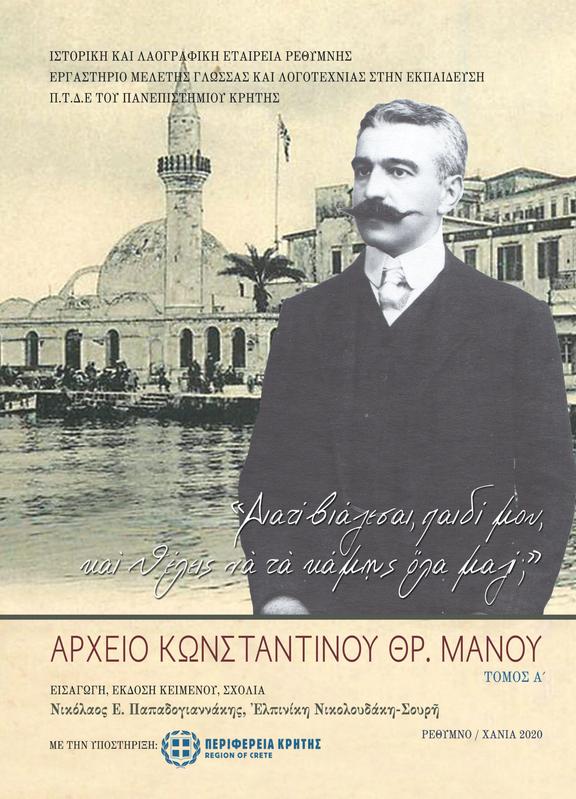 Οι δύο Επιμελητές, Παπαδογιαννάκης και Νικολουδάκη, μάς ενημερώνουν, επίσης, ότι, επειδή το υλικό είναι πολύ, ο παρών τόμος περιλαμβάνει κείμενα με κριτήρια χρονολογικά, τα οποία, φυσικά, αφορούν την πρώτη περίοδο της δημιουργίας του Μάνου. Το δυσάρεστο είναι ότι από τον θάνατό του και έπειτα σποραδικά μόνο ακούγεται το όνομά του στις Ιστορίες Νεοελληνικής Λογοτεχνίας, είτε στις αναζητήσεις της Γενιάς του 1880 είτε στους Αγώνες του για τη Δημοτική. Κι ακόμα δεν γνωρίζαμε ότι με τα ποιήματα του στα γαλλικά και στα γερμανικά άνοιγε παράθυρα για την Ελληνική Ποίηση προς την Ευρώπη. Στη βιβλιογραφία επίσης ελάχιστες είναι οι αναφορές∙ μία στην Νέα Εστία του 1941, μία διάλεξη του Κ.Ε. Μητσοτάκη το 1952, μια ανακοίνωση το 1986 στο Στ΄ Διεθνές Κρητολογικό Συνέδριο, μια μονογραφία, λίγα χρόνια αργότερα, για το Γλωσσικό Ζήτημα και μία αναφορά το 2004, με αφορμή τους Ολυμπιακούς Αγώνες. Επομένως, η ανακίνηση του ενδιαφέροντος για τον Μάνο από τον Παπαδογιαννάκη και την Νικολουδάκη όχι μόνο απαραίτητη ήταν αλλά και συγκινητική. Τα εύσημα αρμόζουν και στον απόγονο, τον Αλέξανδρο Μάνο, ο οποίος φρόντισε το ταλαιπωρημένο από πολλές ατυχίες αρχείο, το οποίο διατήρησε, φρόντισε, τακτοποίησεμετά την τελευταία του κακοποίηση από τους διαρρήκτες στη βίλα όπου φυλασσόταν. Οι φιλόπονοι επιμελητές εκφράζουν τις ευχαριστίες τους σε όλους εκείνους που τους συνέδραμαν στην προσπάθειά τους, έργο τιμής για τους ίδιους αλλά και υποχρέωση κάθε Κρητικού και κάθε Έλληνα.