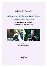 Το παρόν βιβλίο με τον τίτλο Οδυσσέας Ελύτης- René Char, στην επιμελημένη έκδοση από το Μελάνι φέρει στο εξώφυλλο τη φωτογραφία των δύο επιφανών λογοτεχνών των οποίων «Σημείο Τομής Αδαμάντινο» είναι το Αιγαίο. Και όπως γράφει και στο μότο του ο René Char, «Η ζωτικότητα του ποιητή δεν είναι μια ζωτικότητα για το επέκεινα, αλλά ένα σημείο αδαμάντινο του τώρα για παρουσίες υπερβατικές και καταιγίδες πλανόδιες». Στον Πρόλογο του Jacques Bouchard έχουμε και μότο από τον Ηράκλειτο, «Κεραυνός οιακίζει», από τον Ελύτη «Μιλημένη από τον ήλιο η Μοίρα» και από τον Char “Oraguese liberté dans les langes de la foudre sur la souveraineté du vide” .