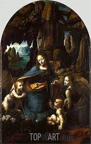 Ο Λεονάρντο Ντα Βίντσι, στο έργο του η Παναγία των ΒράχωνLaVerginedelleRocce, τοποθετεί την Παναγία σε ένα μεταφυσικό σκοτεινό σπήλαιο, με τον μικρό Χριστό, τον Ιωάννη και τον αρχάγγελο Ουριήλ. Διαβάζω και αντιγράφω από το ίντερνετ ότι « Οι βράχοι και τα σπήλαια είχαν συσχετιστεί ιδιαίτερα με τον Ιωσήφ και την Παρθένο, καθώς υπήρχαν αρκετές μεταφορές της εποχής για την περιγραφή της Αγίας Οικογένειας: Η Παρθένος αναφερόταν ως «ο Βράχος που δεν είχε σμιλευτεί από ανθρώπινο χέρι», ενώ ο Ιησούς, Υιός Θεού, ήταν το «όρος που λαξεύτηκε από το όρος, όχι από ανθρώπινο χέρι». Εκείνο που αποθησαυρίζουμε από τον σχολιαστή είναι ότι ο βράχος είναι η ίδια η Παναγία. Η Παναγία «λαξεύτηκε» από το όρος, άρα είναι βράχος και σπήλαιο και «μήτρα σκοτεινή», κατά τον Ελύτη, ενώ ο Ιησούς είναι το όρος που δεν λαξεύτηκε από ανθρώπινο χέρι.