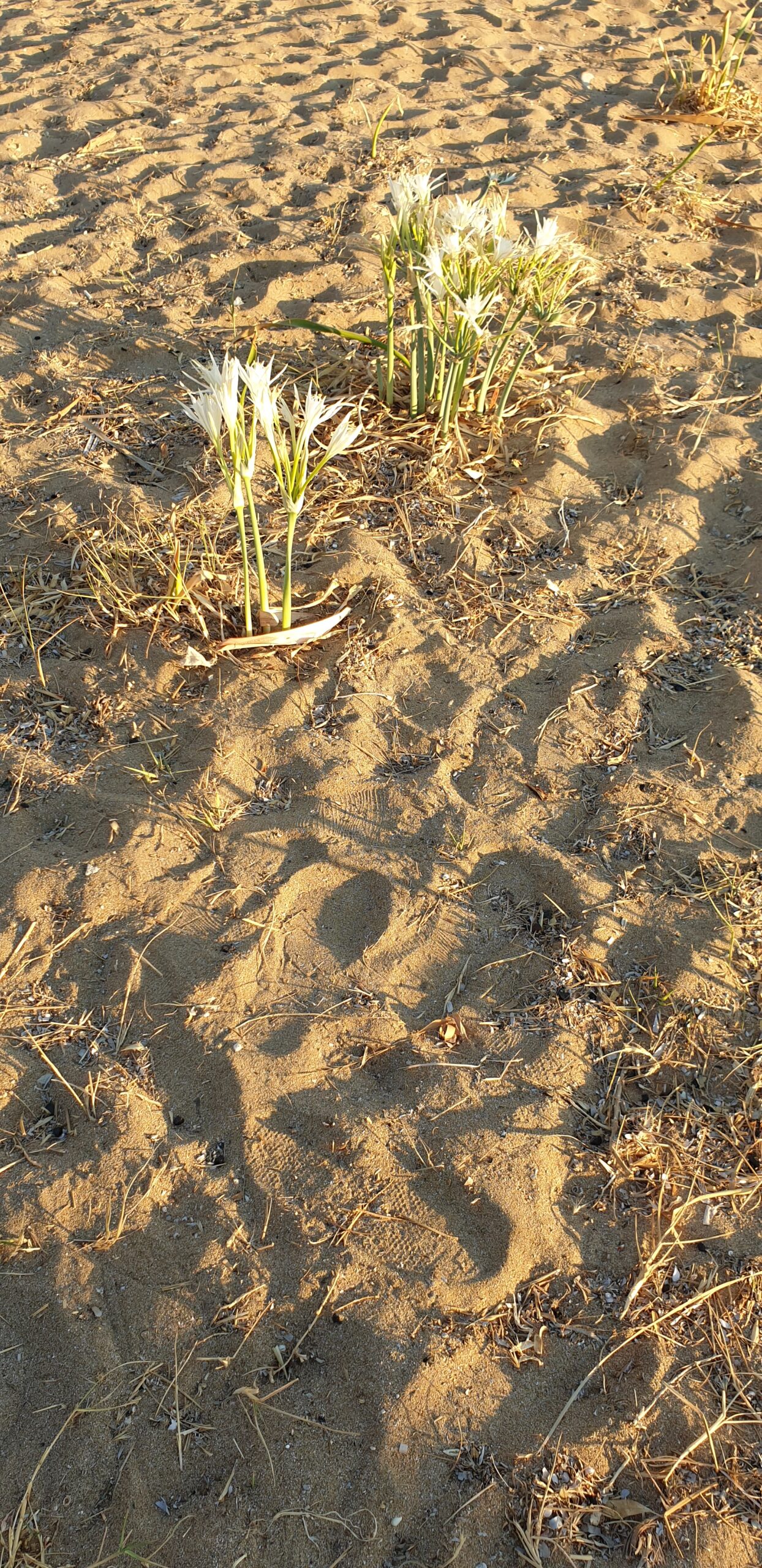 Το Pancratium maritimum φύεται ανάλαφρα και ταπεινά στην αμμουδιά μέσα στην καυτή άμμο. Κραταιό κι όμως εύθραυστο, απαλό κι όμως ακλόνητο μέσα στην πυρωμένη αμμουδιά, ντελικάτο και αέρινο, εκλεπτυσμένο και ανθεκτικό στη βαναυσότητα των αέρηδων. Φυτρώνει εκεί και κοσμεί με μια διαχρονική ομορφιά το άνυδρο τοπίο και σε βάνει να σκεφτείς πως η ζωή χρειάζεται ίσως μόνο μερικές στάλες, έστω κι αλμυρές για να ανθίσει, έστω κι αν είναι δάκρυα του πελάγους.