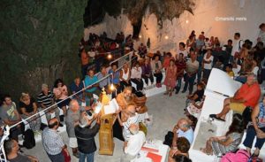 Ανήμερα της Χάρης της σφάζονταν αρνιά όπως και την Πασχαλιά (Η κοίμηση Της Παναγιάς ονομάστηκε δίκαια Πάσχα καλοκαιριού ) Και κοντολογίς στην Κάλυμνο, σε ένα βράχο καταμεσής στο πέλαγος μια άλλη Παναγία, η Παναγιά η Ψεριμιώτισσα, περιμένει στον κάβο σαν χελιδόνια τα ξενάκια της . Τα παιδιά της να ‘ρθουν προσκυνητές στην χάρη Της . Και Εκείνη η Δέσποινα της καρδιάς τους θα τους περιμένει στο σμαραγδένιο λιμάνι του νησιού . Αυτά σαν θα ‘ρθουν στο νησί με δάκρυα στα μάτια θα την συνοδεύουν στο σπίτι της 150 μέτρα πέρα από το λιμάνι ψάλλοντας και δοξάζοντας.