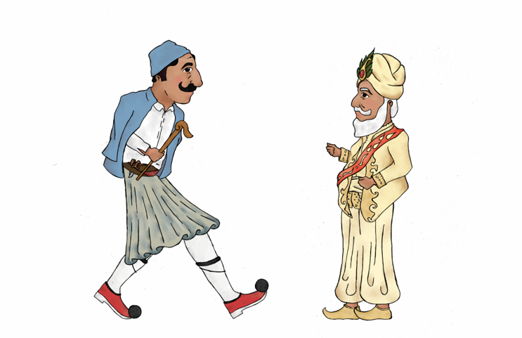 ΚΑΡΑΓΚΙΟΖΗΣ: Και συ πασά να φροντίσεΙς να μη ξεχάσεις το δίκιο μας.