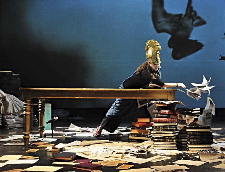 Αν τέλειωνε στο διάλειμμα, θα ήταν τέλεια αυτή η μονολογική (μετά μουσικής, ζωντανής) παράσταση. Βραβείο ερμηνείας για την πρωτεϊκή ηθοποιό, βραβείο ηχητικού τοπίου για τον επί σκηνής μουσικό. Βραβείο θεατρικού έργου για τον δραματουργό που συνέθεσε αιώνες, προσωπικότητες, πραγματικότητες… Βραβείο video–art, φωτισμών. Σκηνικά και κοστούμια απολύτως λειτουργικά, αν όχι και τέλεια.