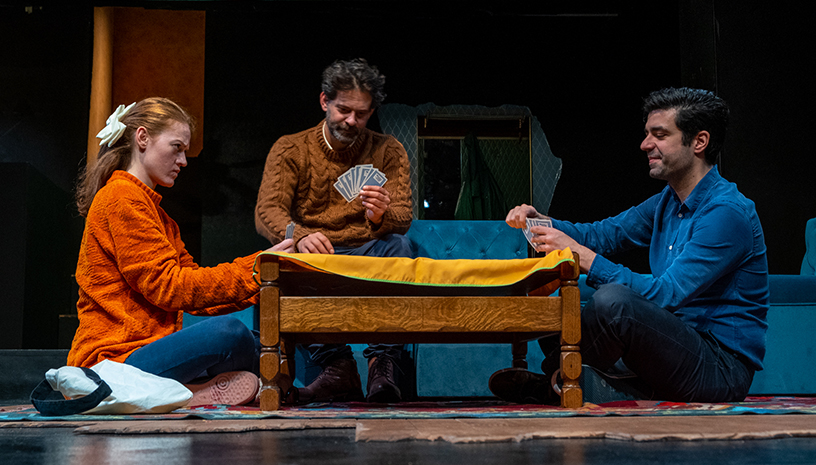 Γράφουμε ένα έργο για τα λόγια, που δεν αρκούν, κι όμως μόνο τα λόγια έχουμε. Λέξεις πάνω σε χαρτί, λέξεις στον αέρα. Τρεις άνθρωποι-άλλωστε πάντα τρεις είναι οι άνθρωποι-παλεύουν να κοιταχτούν, να αγαπήσουν, να «βγουν στην ζωή». Η μοναξιά τους είναι η γέφυρα που τους ενώνει. Τι άλλο; Ένα παιχνίδι με χαρτιά, ένα ποτήρι κρασί. Μια παιδική ζωγραφιά.
