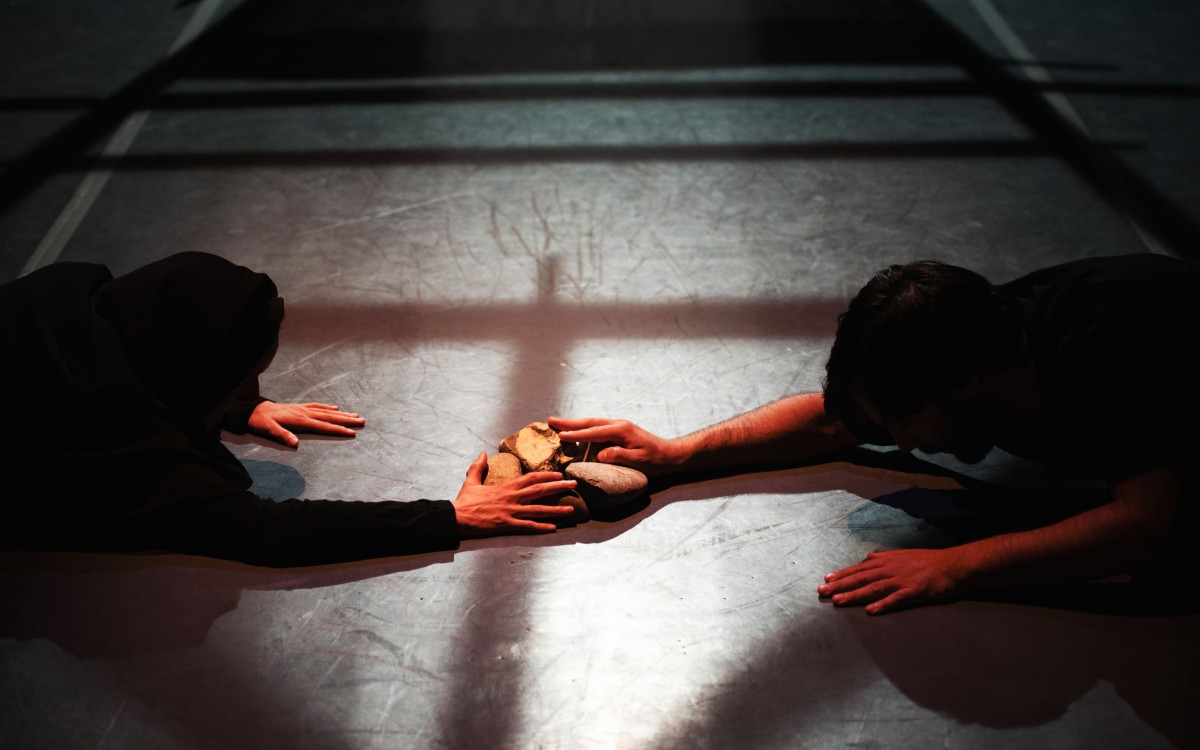 Μυσταγωγία με κάποιους από τους θεατές καθισμένους τοξωτά γύρω από τον διαγώνιο διάδρομο της σκηνής, όπου παρέλαυναν αποσπασμένα από τη σκιά και μετά ξαναγύριζαν στο σκότος τα δρώντα πρόσωπα, εναλλάσσοντας ρόλους, προσωπεία και περσόνες.