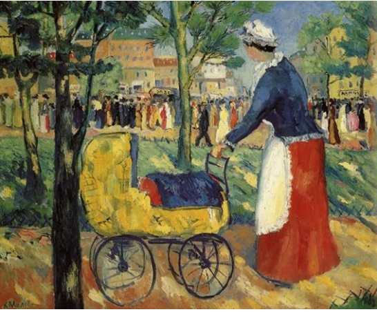 Ο Καντίνσκυ τον προσκάλεσε το 1912 μαζί τον Νταβίντ Μπουρλιούκ να συμμετάσχουν στην 2η έκθεση της καλλιτεχνικής ομάδας του Μονάχου ”ο Μπλε Καβαλάρης”. Γνώρισε ακόμα τον ”πρωτογονισμό” της Γκοντσάροβα και του Τάτλιν με τον οποίο διαφώνησε, όπως και με τη ζωγραφική του Φερνάν Λεζέ.