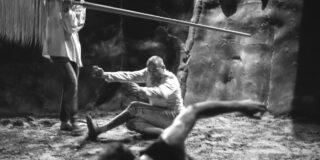 Ο Τσαρούχης πάλι, παίρνει ένα σκηνικό της Πόποβα για μια παράσταση του Μέγιερχολντ, το κονταίνει και το φαρδαίνει και φτιάχνει το σκηνικό για τους Όρνιθες του Κουν.