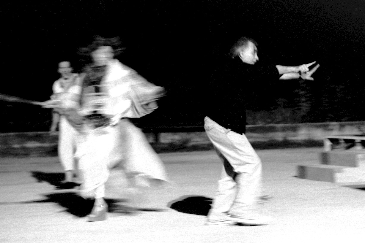 [Φωτογραφίες από το λεύκωμα: ΘΕΑΤΡΟ ΤΕΧΝΗΣ ΚΑΡΟΛΟΥ ΚΟΥΝ, ΕΠΙΔΑΥΡΟΣ 1985-1998, ( Έκδ. Αιγόκερως/Θέατρο Τέχνης, 2019). Αριστοφάνη ΒΑΤΡΑΧΟΙ, Αύγουστος 1992. Σκηνοθεσία Μίμη Κουγιουμτζή.]