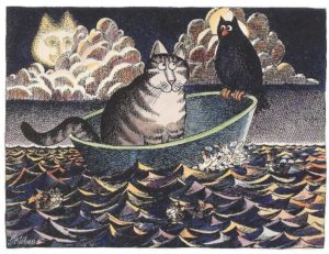 Εδώ που είμαστε και, σε πνεύμα ντιπ αγγλοσαξονικό, νά και οι γάτες του Τόμας Στερνς Έλιοτ, με το ανησυχαστικό χιούμορ της εικονογράφησης του Edward Gorey, κατά το Βάφτισμά τους στο Εγχειρίδιο Πρακτικής Γατικής, που με κεφάτη έμπνευση μας έχει μεταφέρει η Παυλίνα Παμπούδη.