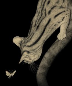 Κι έτσι η γατοπαρουσίασή μας αρχίζει, με το κουβάρι της Ντίνας, εκείνης της Αλίκης των θαυμάτων, να ξετυλίγεται ενώ το γατάκι τρέχει ξωπίσω του, το κουτουλάει και το σπρώχνει με τα πατουσάκια του και προσποιείται ότι του ξεφεύγει, παίζει με σκέρτσο και κομψή αγριάδα, μια υπενθύμιση της αθώας βαρβαρότητας της φύσης. Σαν σωστό γατί που είναι. Και το κουβάρι ρολάρει κι η άκρη του μας τραβάει κατακόκκινη στην κουνελότρυπα, μόνο που εμείς, αντί να πέφτουμε σαν την Αλίκη, σκαρφαλώνουμε άκοπα σε ένα γιγάντιο γατόδεντρο που απλώνεται και κεντάει τον ουρανό διάφανες φυλλωσιές. Και εκεί, ανάμεσα στις φρέσκιες πρασινάδες, πάνω από το γήπεδο του κροκέ, πανταχού παρών και κατά βούληση απών, όπως κάποιες δικές μας πλευρές που χάνουμε και ξαναβρίσκουμε αυθαιρέτως, το χαμόγελο της άφοβης γάτας του Τσέσαϊρ που διόλου δεν σκιάζεται μην αποκεφαλιστεί από την Κόκκινη Βασίλισσα, αφού «Δεν γίνεται να πάρεις το κεφάλι κάποιου που δεν έχει σώμα, ε;» Η γάτα αυτή η δασκάλα, όπως όλες οι σωστές οι γάτες, μας λέει, «Αφού δεν ξέρεις πού πηγαίνεις, όποιον δρόμο και να πάρεις εκεί θα βρεθείς. Κι άκου δω για να μαθαίνεις: δεν είναι όλοι οι περιπλανώμενοι χαμένοι. Ούτε βέβαια τρελοί˚ απλώς η πραγματικότητά τους είναι διαφορετική».