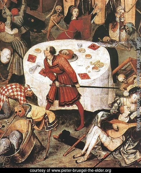 Ο μεγαλύτερος Φλαμανδός ζωγράφος του 16ου αιώνα Πέτερ Μπρέγκελ ο πρεσβύτερος (περ. 1525-69) φιλοτέχνησε πλάι στις ειδυλλιακές σκηνές της καθημερινής ζωής – τις ηθογραφίες του – το Θρίαμβο του Θανάτου, το 1562 που σήμερα βρίσκεται στο μουσείο Πράδο της Μαδρίτης.
