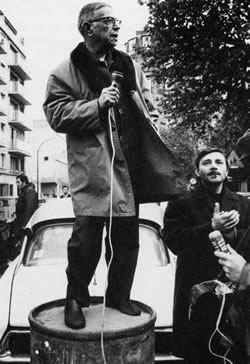 Μαζί με το μεγάλο φιλόσοφο Μπέρτραντ Ράσελ σχηματίζουν το δικαστήριο που θα δικάσει τα εγκλήματα πολέμου που διέπραξαν οι Αμερικανοί στο Βιετνάμ. Συναντά τον Νάσερ, ενώ ταξιδεύει στο Ισραήλ για να διεκδικήσει το δικαίωμα των Παλαιστινίων να επιστρέψουν στην πατρίδα τους. Το Μάη του ’68 δηλώνει: «η μόνη σχέση που μπορούν να έχουν οι φοιτητές μ’ αυτό το Πανεπιστήμιο, είναι να το διαλύσουν και για να γίνει αυτό δεν υπάρχει παρά μια λύση: το πεζοδρόμιο».