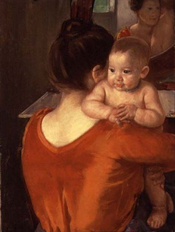 Ο Ντεγκά είχε ζωγραφίσει πλάτη με παστέλ την Μαίρη Κασάτ να στέκεται μπροστά σε πίνακες στο Λούβρο. Και παρακολουθούσε πάντα την εξέλιξή της. Η Κασάτ μορφικά και σχεδιαστικά είχε επηρεαστεί από τον μέντορά της και δεν επέτρεψε στο φως και το χρώμα να διασπάσουν τη στερεότητα των μορφών.