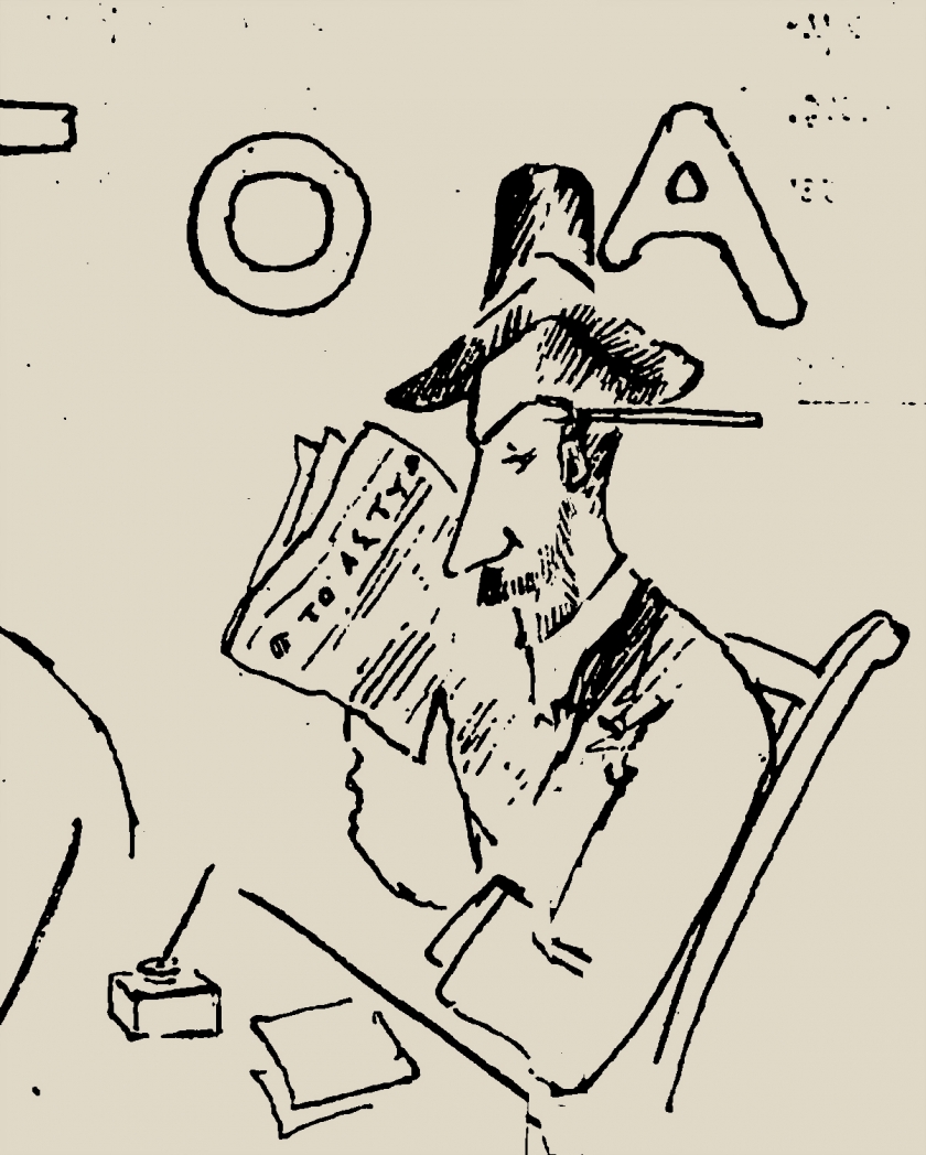 Ο Δημήτρης Ταγκόπουλος, διευθυντής του Νουμά, πρώτος του εκδότης, έγραψε πως τον έβλεπε να τριγυρίζει στους αθηναϊκούς δρόμους «πάντα με το ίδιο χρώμα των ρούχων, το ίδιο σχήμα της ρεπούμπλικας, τη σφήνα του καλοψαλιδισμένου πάντα γενιού του, την ανασηκωμένη, που αντίκρυζε την άκρη της μύτης, με τα μάτια του τα μικρά, τα μυωπικά, τα περιεργότατα που αδιάκοπα γύριζαν δεξιά – ζερβά και όλα προσπαθούσαν να τα ιδούν και να μην τους ξεφύγει το παραμικρότερον».   Σπούδασε δύο χρόνια νομικά και παράλληλα ξεκίνησε να δημοσιεύει στην σατυρική εφημερίδα Ασμοδαίος. Αργότερα στην Ακρόπολι του Βλάση Γαβριηλίδη.