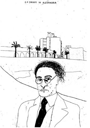 Επέλεξε, λοιπόν, 14 ποιήματα και επικεντρώθηκε στην απλή γραμμή και χάραξε απευθείας σε χαλκό 20 περίπου γραμμικά σχέδια που τελικά εκδόθηκαν το 1967 από τις εκδόσεις Alecto. Δύο από αυτά απεικονίζουν τον ίδιο τον Καβάφη, σχεδιάστηκαν στη Βηρυτό και κοσμούν κάποιες πολυτελείς εκδόσεις της συλλογής, η οποία εκτέθηκε αρκετές φορές. Στην Ελλάδα εκτέθηκαν μαζί με άλλα χαρακτικά του στο Μουσείο Μπενάκη το καλοκαίρι του 2005.