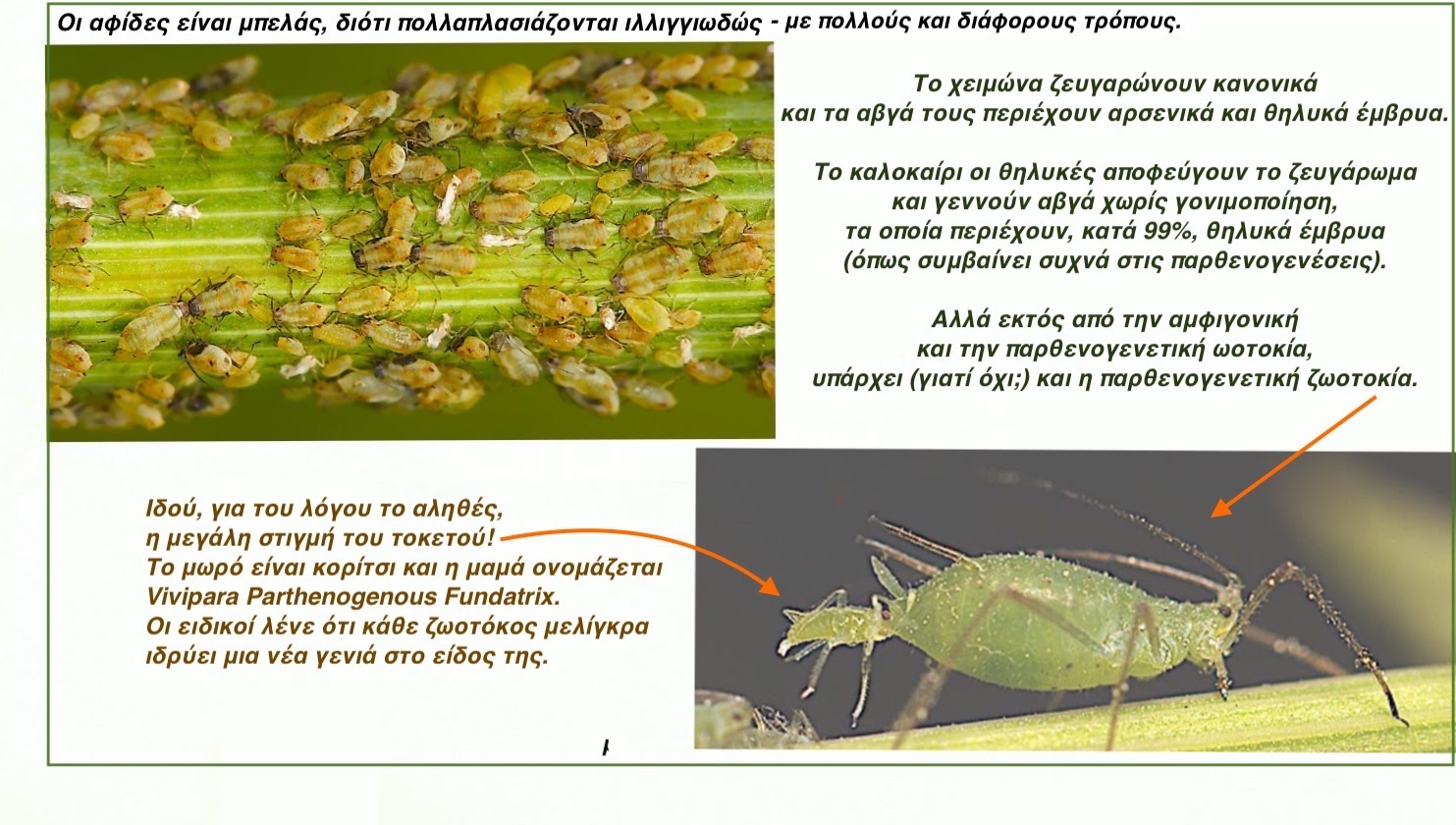 Χάρη σ’ αυτό λοιπόν, μπορούμε να καταλήξουμε προσωρινά στο συμπέρασμα ότι το μοναδικό είδος στον πλανήτη που αναπαράγεται με τον τρόπο των θεϊκών οντοτήτων είναι η υπεροικογένεια των Αφιδοειδών.