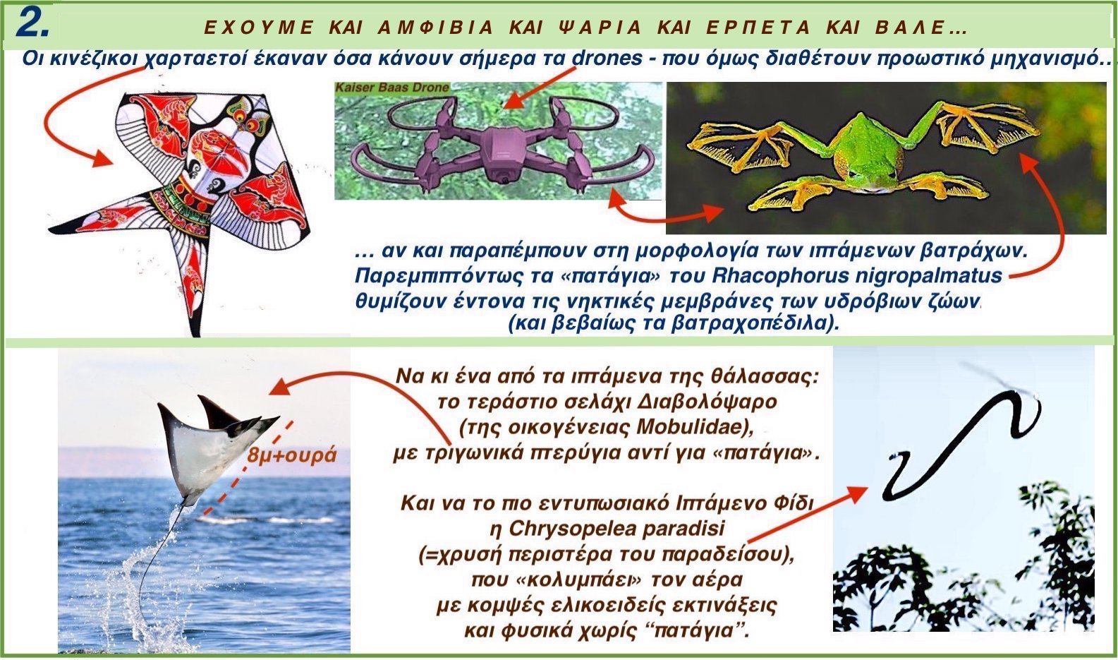 Ο Ιπτάμενος Δράκος της οικογένειας Αγαμίδες, καθώς και εκατοντάδες άλλα σπονδυλωτά που αναφέρονται ως «ιπτάμενα» (εκτός των πουλιών, των νυχτερίδων και ίσως των αγγέλων και κάποιων μυθικών τεράτων) δεν ανήκουν στα πτερόεντα όντα ούτε μπορούν να πετάξουν στ’ αλήθεια. Απλώς βρίσκονται περιστασιακά στον αέρα, όπως ακριβώς ο χαρταετός, ο οποίος σημειωτέον δανείστηκε το όνομά του από ένα πτηνό που συνηθίζει να διανύει αποστάσεις πλανάροντας στον αέρα με ακίνητα φτερά, για ξεκούραση, όπως κάνουν πολλά πουλιά. Αυτή η παθητική πτήση (φτερωτών ή άπτερων πλασμάτων) συχνά ονομάζεται αερολίσθηση, αιωροπτέρηση ή αιωροπορία. Ανάλογοι όροι συναντώνται και στο χώρο των εξτρίμ σπορ.