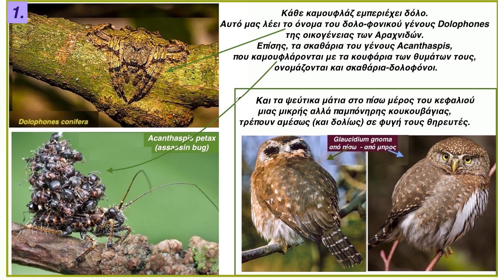 Ένας ενδιαφέρων τρόπος παραπλάνησης είναι ο λεγόμενος βατεσιανός μιμητισμός (Batesianmimicry, από το όνομα του φυσιοδίφη Henry Walter Bates): Μερικά άκακα και ευάλωτα ζωάκια μιμούνται την εμφάνιση των πιο επικίνδυνων ειδών, για να εμπνέουν σεβασμό και να βρίσκουν την ησυχία τους. Τέτοιες μεταμφιέσεις, έστω και αν δεν είναι πολύ πειστικές, δημιουργούν μια εικόνα κάπως αλλοπρόσαλλη, σαν ένα άγνωστο είδος ζώου που κανένας δεν θέλει να πλησιάσει – όχι από φόβο για τα δόντια του, αλλά από φόβο για το ανοίκειο. Αυτό λέγεται «νεοφοβία», υπάρχει σε όλα τα ζωντανά πλάσματα, νοήμονα ή μη, και εγγυάται την επιτυχία του βατεσιανού μιμητισμού.