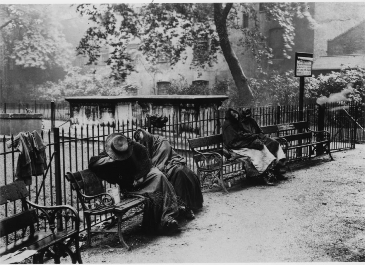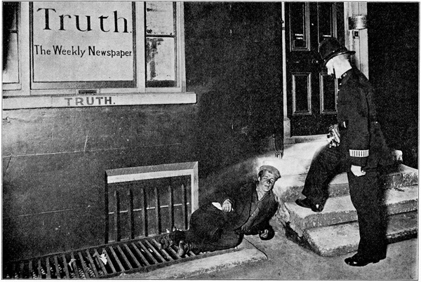 Όταν τους έδιωξαν από το Άσυλο Αστέγων Ουάιτσαπελ, αυτοί οι δύο άντρες βρέθηκαν μαζί μου στο Άσυλο Πόπλαρ. Δεν ήταν τίποτα σπουδαίο, αλλά δεν είχαμε κι άλλη λύση. Ή στο Πόπλαρ ή άστεγοι μες στη νύχτα. Και οι δυο λαχταρούσαν ένα κρεβάτι, γιατί ήταν «ξεπατωμένοι», όπως έλεγαν. Ο αμαξάς, που ήταν πενήντα οκτώ χρονών, είχε περάσει τις τρεις τελευταίες νύχτες άστεγος, και ο εξηνταπεντάρης μαραγκός βρισκόταν για Πέμπτη νύχτα στους δρόμους.