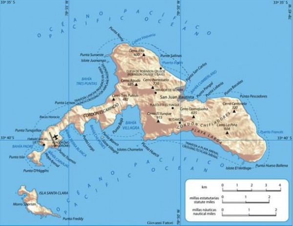 Τα δυο αυτά νησιά που πήραν το όνομα του Ισπανού θαλασσοπόρου έχουν το καθένα το δικό του όνομα. Αυτό που είναι μακρύτερα από τις ακτές της Χιλής οι Ισπανοί κατακτητές το ονόμασαν Μάς Afuera. To άλλο που είναι πιο κοντά το είπαν Μάς –a–Tierra.Πέρασαν από τότε πολλά χρόνια, για να φτάσουμε σ’εκείνο το πρωινό που ένα εγγλέζικο πλοίο έριξε άγκυρα κοντά στις ακτές του νησιού Μάς Afuera. Μια βάρκα του καραβιού με οκτώ άνδρες και τον πλοίαρχο άραξε στην ακρογιαλιά του νησιού. Το νησί, αν και είχε πυκνή βλάστηση, ήταν ακατοίκητο. Όταν ο πλοίαρχος και οι άνδρες του αποβιβάστηκαν, υπήρχε ανάμεσά τους και ένας που είχε τα χέρια δεμένα πίσω. Ο πλοίαρχος έδωσε αμέσως διαταγή να τον λύσουν. Του είπε λίγα λόγια και μετά έκανε νόημα στους άνδρες να μπουν πάλι στη βάρκα , για να επιστρέψουν στο πλοίο. Εκείνος με λυμένα τα χέρια στεκόταν μονάχος στην ακρογιαλιά, κοιτάζοντας τους άλλους που έφευγαν με τη βάρκα. Λίγο πιο πέρα από εκεί που στεκόταν είχαν αφήσει, με διαταγή προφανώς του πλοιάρχου, ένα τουφέκι. Ένας που θα κοίταζε από μακριά αυτή τη σκηνή θα καταλάβαινε ότι πρόκειται για «maroon», την εγκατάλειψη δηλαδή απείθαρχου ναύτη ή πειρατή σε ερημονήσι. Η σκηνή πάντως που περιγράφω πιο πάνω είναι πραγματικό γεγονός. Συνέβη στις αρχές του 18ου αιώνα και ο ναύτης που εγκατέλειψαν στο νησί Μάς Afuera ήταν ο Alexander Selkirk, που έμεινε εκεί τέσσερα χρόνια και τέσσερις μήνες.