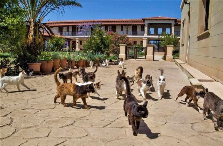 Την άλλη μέρα το μεσημέρι, κάτω από τον καυτό ήλιο της Κύπρου, επισκέφτηκα το «Μοναστήρι των Γάτων». Ξερό τοπίο. Μια καλόγρια με διαβεβαίωσε ότι δεν υπάρχουν πια φίδια. Δεν την πίστεψα. Φαντάστηκα ότι και σήμερα κάπου μες στα ξερά χόρτα, που γεμίζουν ένα μεγάλο κάμπο μπροστά στο Μοναστήρι, υπάρχουν πολλά φίδια.
