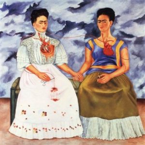 Ένας θάνατος, σαν αυτόν που βιώνουμε καθημερινά στον σύγχρονο παγκόσμιο παραλογισμό με την αποδόμηση όλων των αξιών. Η αγάπη και η προδοσία από τον πίνακα της Φρίντας «Οι δύο Φρίντες», μας ακολουθεί ως το τέλος της παράστασης. Οι συντελεστές, Κατερίνα και Robin, παίζουν με τον χώρο, ζωντανεύοντας την πολύπαθη Frida. Η πρώτη με την απαράμιλλή υποκριτική της ικανότητα, ο δεύτερος με τον εξαιρετικό χειρισμό της σύγχρονης τεχνολογίας, ζωγραφίζουν κυριολεκτικά έναν ολόκληρο κόσμο, από ζωντανές εικόνες. Το αποτέλεσμα είναι τόσο αριστοτεχνικά συντονισμένο, που μαγεύει τον θεατή.