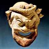 Επίσης βρίσκουμε μάσκες στο αρχαίο ελληνικό θέατρο. Αυτές είναι συχνά με στόμα ορθάνοιχτο που περιέχει ένα χάλκινο μεγάφωνο για να ακούγεται δυνατότερα η φωνή προκειμένου να φθάσει σε ένα μεγαλύτερο κοινό.