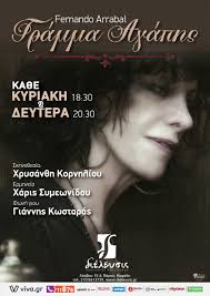 Το Γράμμα Αγάπης παίχτηκε στο Θέατρο Διέλευσις. Τον ρόλο της μητέρας κράτησε η Χάρις Συμεωνίδου. Στην πρεμιέρα παραβρέθηκε ο ίδιος ο Αρραμπάλ, ο οποίος δήλωσε πως έχει δει το έργο του σε πολλές χώρες, αλλά εδώ, η Ελληνίδα ηθοποιός ήταν η καλύτερη από όποια άλλη και ακόμα, αναγνώρισε το έργο του αμέσως, ενώ δεν ξέρει Ελληνικά. Οι Έλληνες θεατές πάντως απολαμβάνουν και την πολύ καλή μετάφραση που εκπόνησε ο Νεκτάριος-Γεώργιος Κωνσταντινίδης.