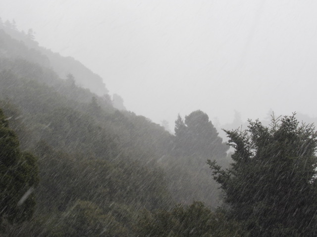 Μετά ο ήχος του νερού, όπως πηδάει από βράχο σε βράχο κατηφορίζοντας όλο το βουνό έως ότου ανταμώσει τον κάμπο. Το ακούς το ρέμα· και το βλέπεις να γυαλίζει, ακόμη και στο βαθύ σκοτάδι, τώρα που τα δέντρα στις όχθες του έμειναν χωρίς φύλλα. Τα περισσότερα φυλλοβόλα του δάσους συντροφεύουν το νερό· αραιά και που καστανιές και καρυδιές κρύβονται ανάμεσα στα ελατόπευκα κι οι λίγες κερασιές και μηλιές αφέθηκαν στην τύχη τους στους παρατημένους κήπους.