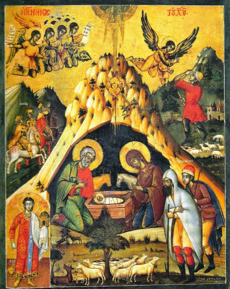 οἱ Ἄγγελοι τὸν ὕμνον, οἱ οὐρανοὶ τὸν Ἀστέρα, οἱ Μάγοι τὰ δῶρα, οἱ Ποιμένες