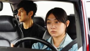 Πρόκειται για το πρώτο δείγμα της ιδιότυπης αλλά καθόλου αναίτιας δομής που επιλέγει ο R. Hamaguchi (Happy Hour, Asako I&II, Ιστορίες της Τύχης και της Φαντασίας) για τη νέα πολυβραβευμένη ταινία του, που στηρίζεται σε ιστορίες του βιβλίου του Haruki Murakami ‘’Men without women’’. Ο θεατής ξέρει ήδη από τον 45λεπτο πρόλογο όσα είναι απολύτως απαραίτητα για να ακολουθήσει δύο χρόνια μετά τις ορατές και αόρατες διαδρομές των ηρώων. Στη συνέχεια, την εξέλιξη της πλοκής μοιράζονται, καθόλου τυχαία, δύο χώροι: ένα κόκκινο παλιό Saab, το αγαπημένο αυτοκίνητο του Yusuke – χώρος ανέκφραστων θλίψεων και αποκαλυπτικών αφηγήσεων – και ένας θεατρικός χώρος στη Χιροσίμα όπου θα ανέβει ‘’Ο Θείος Βάνιας’’ του Τσέχωφ– χώρος συναισθηματικής έκφρασης και αναπαράστασης. Το έξοχο τσεχωφικό έργο έρχεται να υποστηρίξει και να συνδεθεί με το κινηματογραφικό σενάριο σε μια θαυμαστή συνέργεια. Οι μυθοπλασίες και των δύο είναι ψυχογραφικές και η έμφαση δεν δίνεται τόσο στα γεγονότα, όσο στα συναισθήματα και τις σκέψεις των ηρώων, στην αλληλεπίδραση τους και στην απήχηση στο παρόν βιωμάτων που τους στιγμάτισαν.