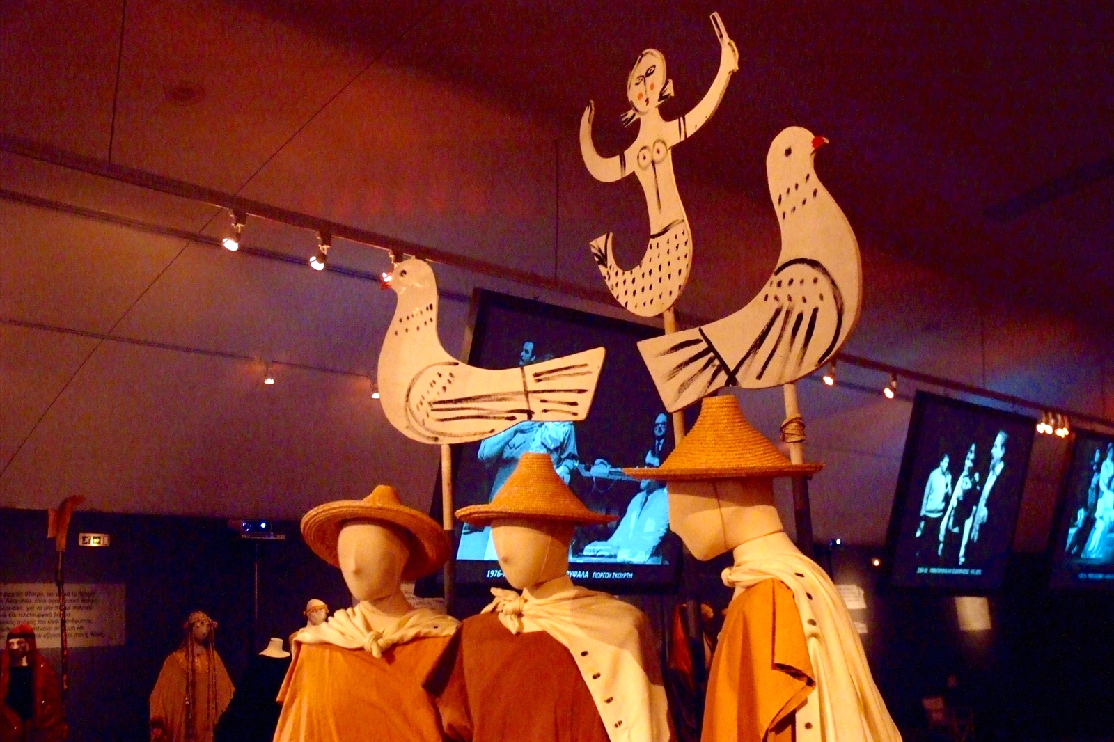(Οι φωτογραφίες από το αρχείο μου: Έκθεση στο Μουσείο Μπενάκη για τα 100 χρόνια του Καρόλου Κουν, το 2008 και από την έκθεση «Θέατρο Τέχνης 75 χρόνια, 75 αντικείμενα» στη Στοart Κοραή, το 2017.)