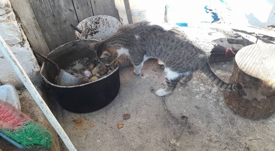 Μα κι όταν ο παππούς σφάζει, τρέχει να του κρατάει συντροφιά. Όλο και κάποιο κομμάτι σκώτι η γλυκάδι θα γευτεί από τα χέρια του. Γελούν και τα μουστάκια της, στο κόσμο της χαράς και της καλοσύνης.