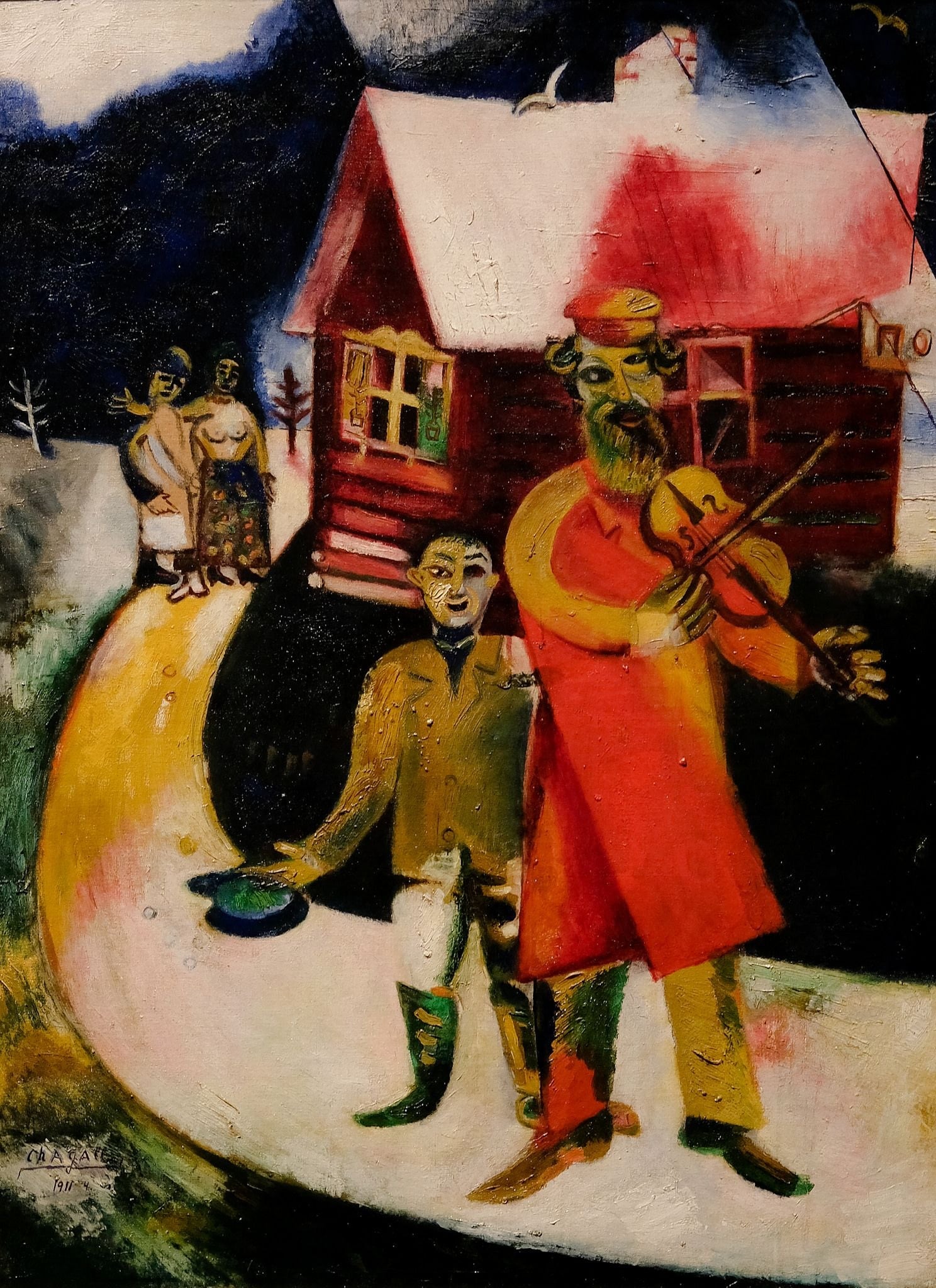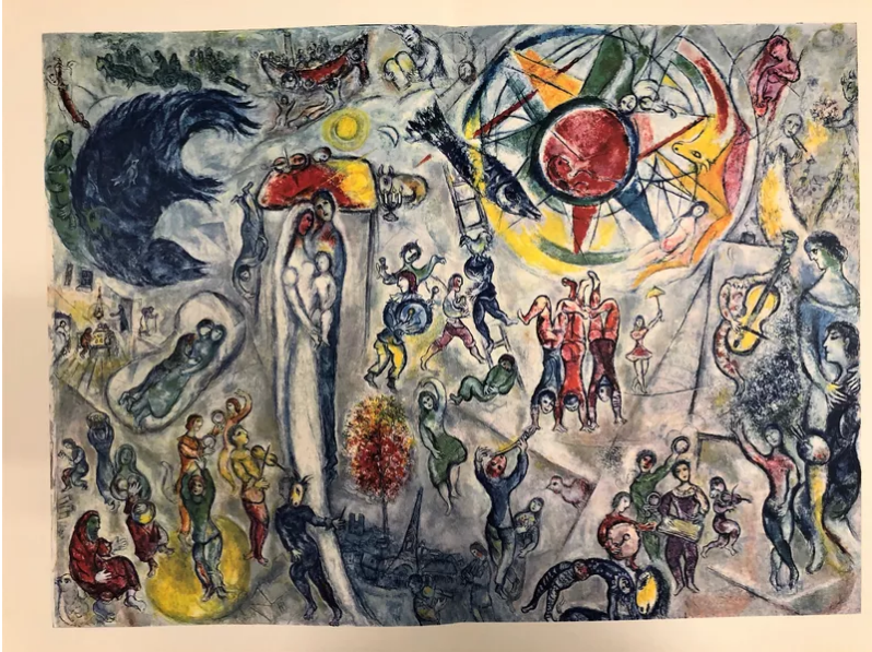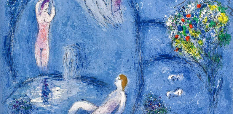 ”Άσε με να μπω, άσε με να δω κάποια μέρα πως βλέπουν τα μάτια σου”. Η ταύτιση δυο ερωτευμένων φέρνει στο νου τους ιπτάμενους εραστές και τους εραστές που αγκαλιάζονται κάτω απ’ το φεγγαρόφωτο, ένα επίμονο μοτίβο του Σαγκάλ, για το οποίο κατηγορήθηκε για ελαφρότητα.