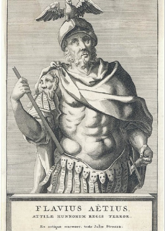 Είδαμε πιο πάνω ότι ο Ρόας, ο θείος του Αττίλα, ήταν απασχολημένος με το να διατηρεί καλές σχέσεις με τη Ρώμη. Θέλοντας να γίνουν αυτές οι σχέσεις ακόμη πιο φιλικές, πρότεινε στον στρατηγό Στηλίχωνα, το δεξί χέρι, θα λέγαμε, του Αυτοκράτορα Ονώριου, να υποδεχτεί στην Αυλή του έναν παρατηρητή από τη Ρώμη. Ο Στηλίχων δέχτηκε την πρόταση του Ρόας και έστειλε ένα δεκαπεντάχρονο αγόρι, τον Φλάβιο Αέτιο. Ο Αέτιος γεννήθηκε το 390 στην Παννονία, που ήταν τότε τμήμα της Ρωμαίκής Αυτοκρατορίας και που ο πατέρας του διοικούσε εκεί τις επαρχιακές, αυτοκρατορικές στρατιές. Εκεί πέρασε τη νεανική του ηλικία. Όσο για τους Ούννους, όχι μόνο τους γνώριζε , αλλά και μιλούσε τη γλώσσα τους. Δεν πρέπει να παραλείψουμε ότι η μητέρα του ήταν ευγενής Ρωμαία της Ρώμης και βαθύπλουτη. Ο μόνιμος, λοιπόν, πρεσβευτής του Στηλίχωνος στην Αυλή του Ρόας δεν ήταν ο πρώτος τυχών νεαρός. Η καταγωγή του και η μεγάλη περιουσία του ουδόλως τον εμπόδιζαν να δίνει μεγάλες προσδοκίες. Το 405, που ο Αέτιος φτάνει στην Αυλή του Ρόας, ο Αττίλας ήταν ακριβώς δέκα ετών. Ο έφηβος συμπάθησε αμέσως το παιδί και το παιδί τον έφηβο. Μια ιστορική φιλία είχε μόλις ανθίσει. Το πεπρωμένο της Ρώμης, της Ευρώπης και όλων των Ούννων από τον Δούναβη μέχρι τα Ουράλια θα εξαρτηθεί αργότερα από αυτή τη φιλία.