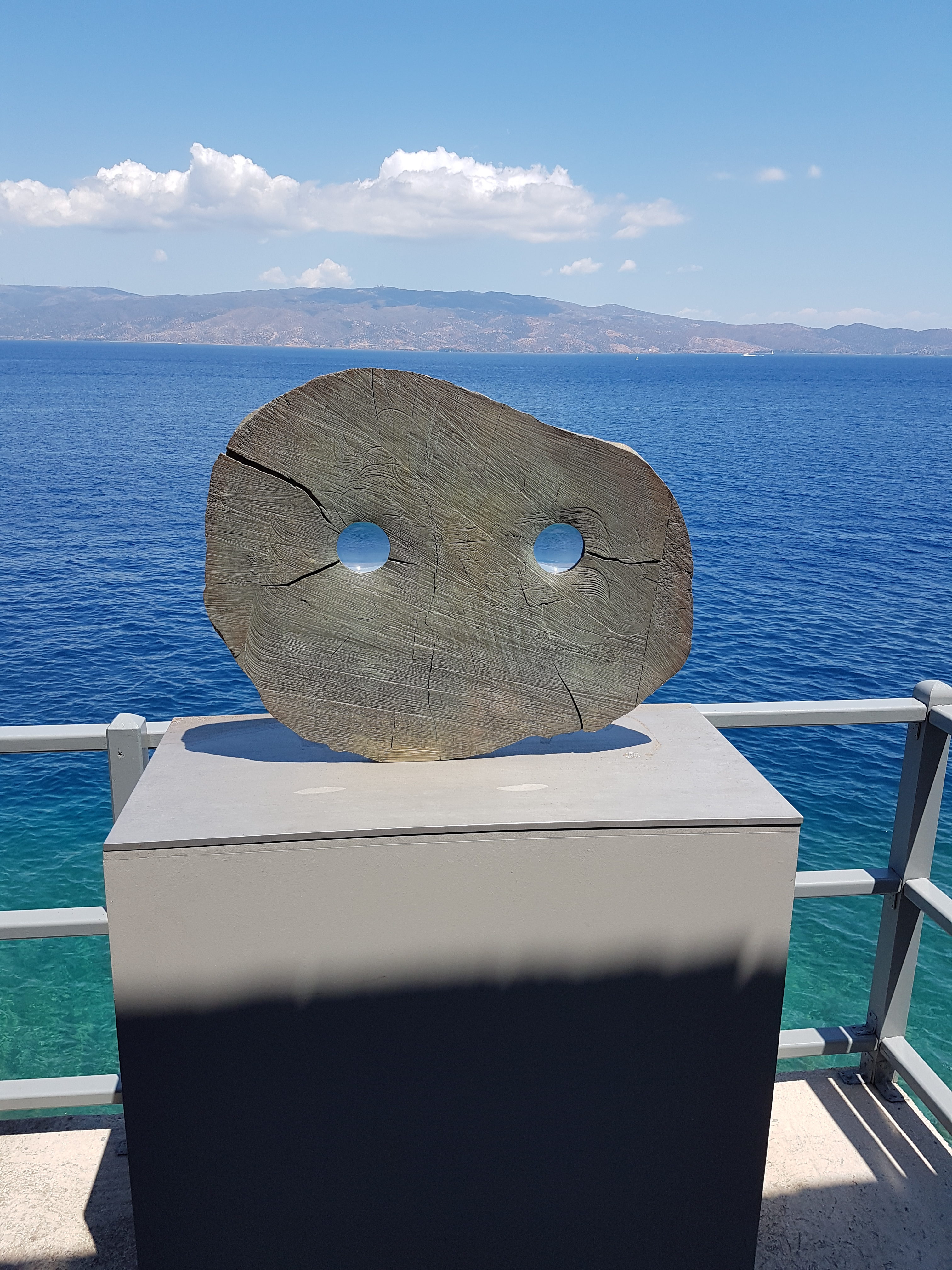 Παρέμεινα πολλή ώρα κοιτώντας και ξανακοιτώντας τα εκθέματα κι ακούγοντας τα διάφορα σχόλια των άλλων επισκεπτών. Είναι μια έκθεση γλυπτών που όλα τα εξωτερικά ερεθίσματα καταλήγουν σε μια εσωτερική βαθειά επεξεργασία. Σκεφτικός, αλλά έχοντας μέσα μου νιώσει μια κάθαρση για το δράμα που παίχτηκε και παίζεται, πήρα το δρόμο της επιστροφής στο λιμάνι. Ήμουν βέβαιος πως αυτή είναι η λύση για όλα τα αιματηρά γεγονότα: τα μεγάλα μάτια της κουκουβάγιας.