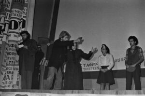 Στο ΣΠΟΡΤΙΓΚ, στην εκδήλωση του Θεατρικού Τμήματος του Πανεπιστημίου, για τον Κώστα Βάρναλη, 1975