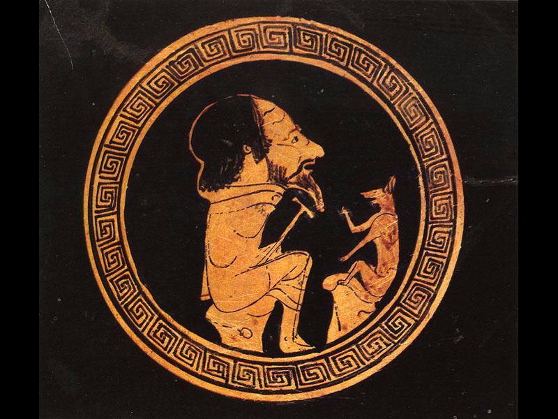 Ο Αίσωπος και η αλεπού. Εσωτερικό ερυθρόμορφης κύλικας (περ. 470-450 π. Χ.)