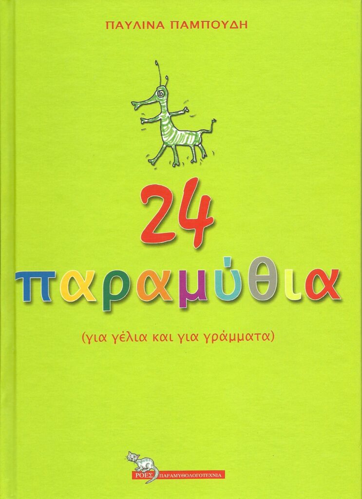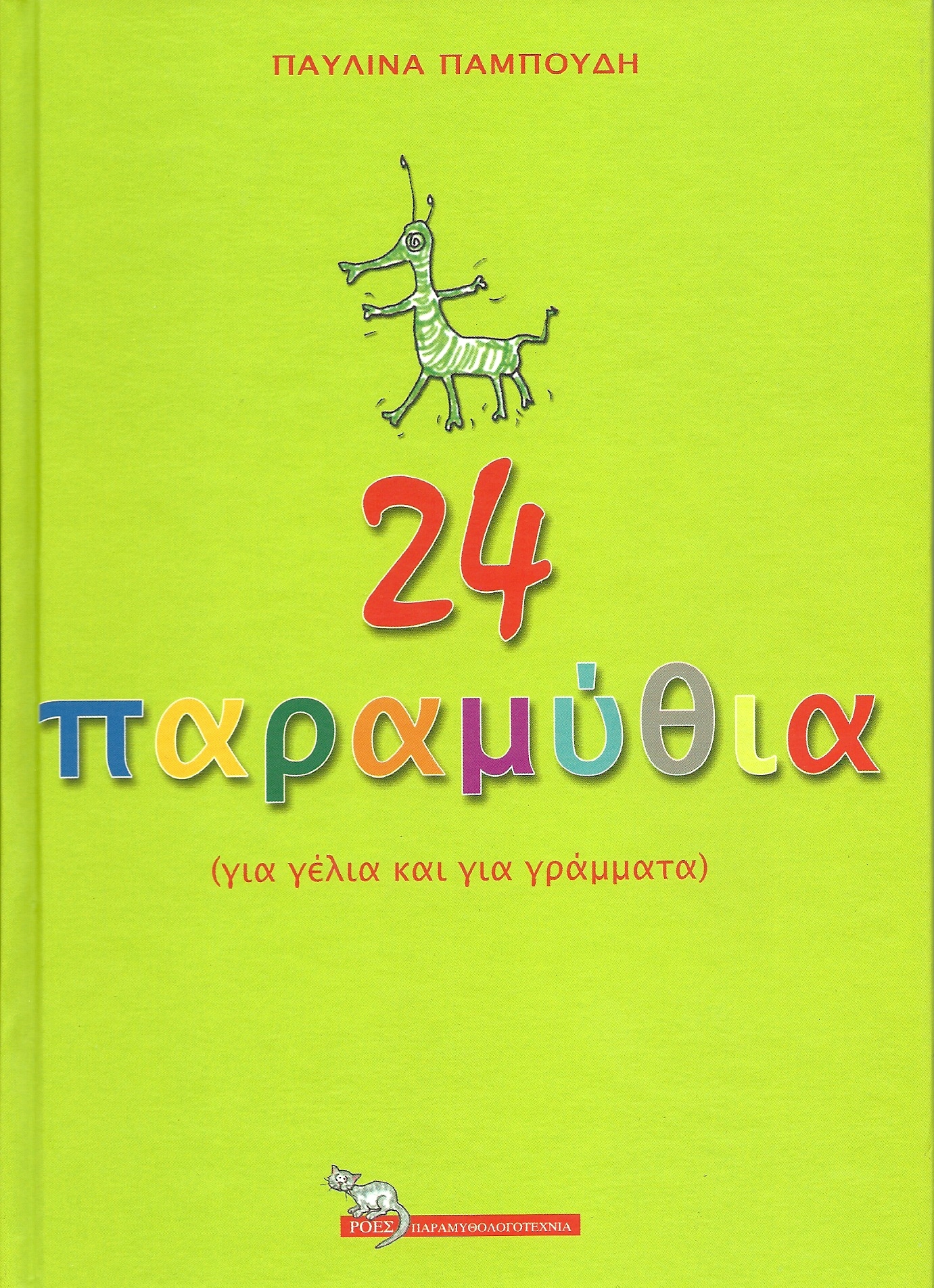 Παυλίνας Παμπούδη, 24 παραμύθια (για γέλια και για γράμματα), Ροές Παραμυθολογοτεχνία, Αθήνα, 2004. Το βιβλίο αποτελούν τα εξής παραμύθια: «Α, α, Ο Αποστόλης κι η Αναμπέλλα», «Β, β, Ο βασιλιάς Βρασίδας ο Β΄ και το βατράχι», «Γ, γ, Ο γαλατάς και η γοργόνα», «Δ, δ, Η δεσποινίς Δέσποινα κι ο Δράκος», «Η ελεφαντόμυγα», «Ζ, ζ, Ο ζωγράφος κι η Ζουλού», «Η, η, Η ηλεκτρική μάγισσα», «Θ, θ, Ο θυρωρός κι ο θησαυρός», «Ι, ι, Ο ιππότης κι ο ιπποπόταμος», «Κ, κ, Ο κ. Κώστας κι ο καλικάντζαρος», «Λ, λ, Το λούνα Παρκ», «Μ, μ, Ο Μέρλιν, η Μάρλεν και ο Μούρλεν», «Ν, ν, Ο νάνος Νιόνιος κι ο νονός του», «Ξ, ξ, Το Ξωτικό Ξουτ», «Ο, ο, Ο οδοντίατρος του Οριάν», «Π, π, Τα παλιοπράγματα», «Ρ, ρ, Η ρέγκα Ροζαλία», «Σ, σ, Το σκουλήκι», «Τ, τ, Το τέρας», «Υ, υ, Η υποπρόξενος από την Υεμένη», «Φ, φ, Το φάντασμα του φάρου», «Χ, χ, Ο χαλίφης Χαρούν ελ Χάχα», «Ψ, ψ, Οι ψεύτες», «Ω, ω, Ο ωραίος ωρολογοποιός».