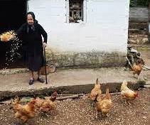 Της έλεγε παράπονα για την κόρη της, που είχε μέρες να φανεί. Τη δικαιολογούσε βέβαια, πως δεν αδειάζει, αλλά και σαν ερχόταν να τη δει, δε προλάβαινε να τη χορτάσει, γιατί έπαιρνε τους δρόμους και γύριζε όλες τις πόρτες, πότε στη μια πότε στην άλλη γειτόνισσα. Η κότα καθόταν αμέριμνα στην ψάθινη καρέκλα απέναντι της και άκουε.