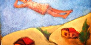 Μπροστά πηγαίνουν οι συγγενείς με βήμα αργό. Τέσσερις άντρες με τις παλάμες τους ακουμπούν την κάσα, που στηρίζεται στους ώμους τους. Ακούγεται ένα σύρσιμο από τα βήματα. Με το χέρι απλωμένο βαδίζω μαζί με τους άλλους. Σταματώ και γυρίζω τον κορμό 45 μοίρες.